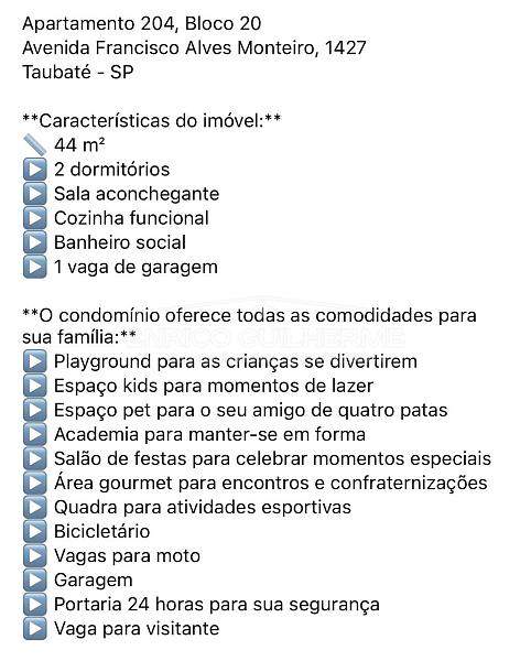 Ideal para quem busca segurança, lazer e qualidade de vida em um só lugar. Localização estratégica em Taubaté, com fácil acesso a comércios, serviços e principais vias da cidade.