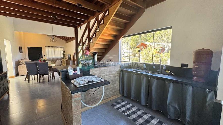 A casa possui um espaço gourmet, ideal para encontros familiares e eventos sociais. A funcionalidade do ambiente se estende ao parquinho para crianças, proporcionando um local seguro e divertido para os pequenos explorarem e brincarem.